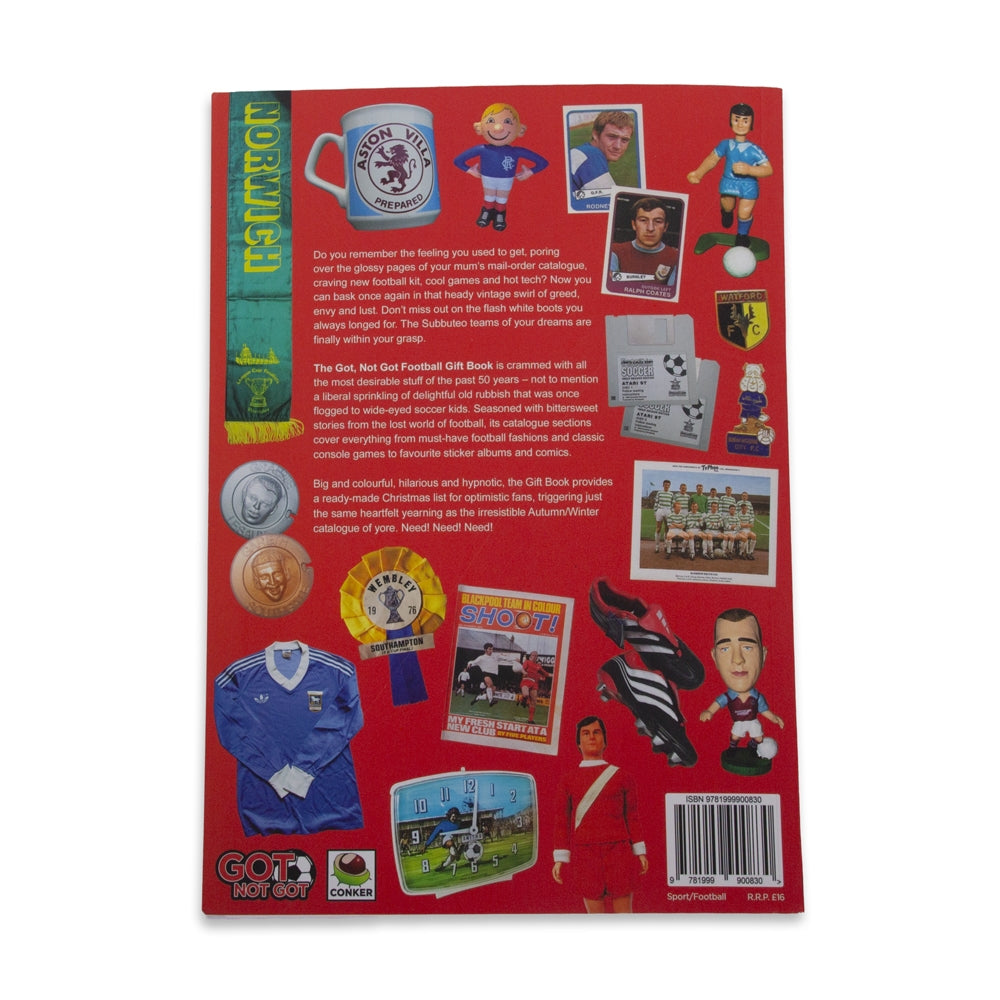 The Got, Not Got Football Gift Book está repleto de los objetos más deseados de los últimos 50 años, además de una generosa dosis de encantadora chatarra que en su día se vendía a jóvenes futboleros de ojos abiertos como platos. Sazonado con historias agridulces del mundo perdido del fútbol, sus secciones tipo catálogo abarcan desde moda futbolística imprescindible y videojuegos clásicos hasta álbumes de cromos y cómics favoritos.
