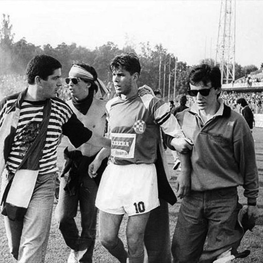 It was in this design that Dinamo’s players entered the 90’s. Notably wearing the kit at Maksimir where Dinamo defeated old rivals, Partizan, 2–1 in a fierce derby victory . The blue shirt, featuring white sleeves and a white lower section, was also reminiscent of a variation once used by the club under its earlier name, Građanski.