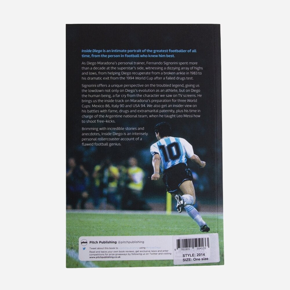 Signorini oferece uma perspetiva única sobre a conturbada lenda, revelando-nos não só a evolução de Diego como atleta, mas também Diego como ser humano — muito diferente da personagem que víamos nos ecrãs de televisão. Ele leva-nos aos bastidores da preparação de Maradona para três Mundiais: México 86, Itália 90 e EUA 94. Temos também uma visão privilegiada das suas batalhas com a fama, as drogas e a paternidade extraconjugal, bem como do período em que esteve à frente da seleção argentina. Repleto de histórias e anedotas incríveis, Inside Diego é um relato profundamente pessoal e intenso de um génio imperfeito do futebol.